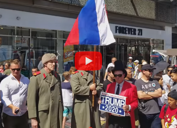 В Интернете был размещен ролик, демонстрирующий трех мужчин с флагом России, стоящих неподалеку от звезды американского лидера Дональда Трампа на Аллее Славы.